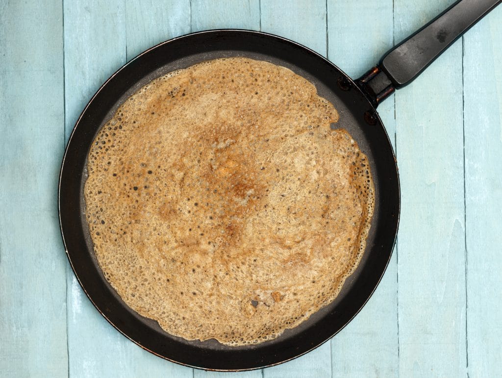 Retourner dès que la pâte n’est plus liquide sur le dessus.