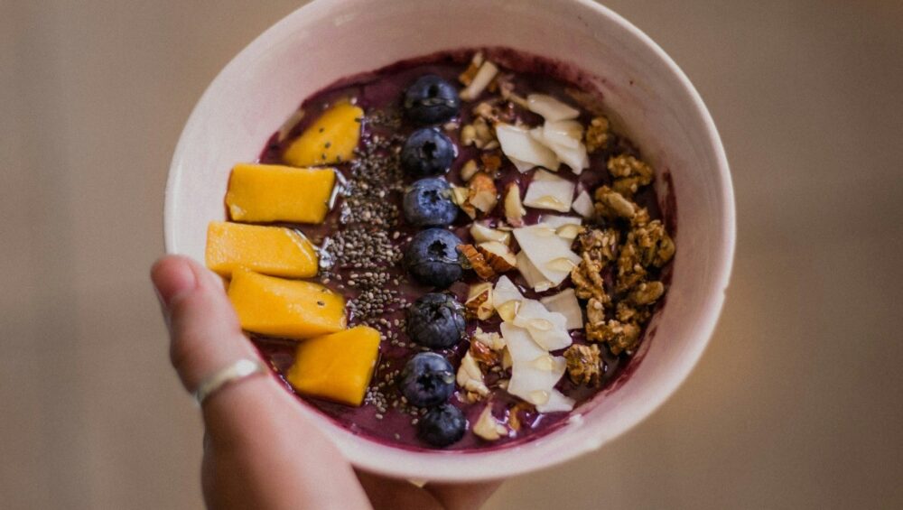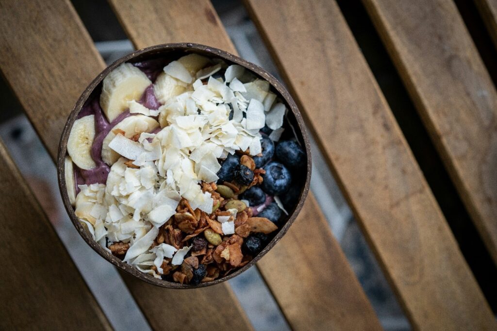 Les bols d’Açai sont riches en nutriments bénéfiques pour la santé. Les baies d’Açai contiennent un pouvoir antioxydant, notamment des anthocyanines, qui aident à combattre les radicaux libres et à réduire l’inflammation. Elles sont également une bonne source de fibres, ce qui favorise la digestion et aide à maintenir un poids santé.
