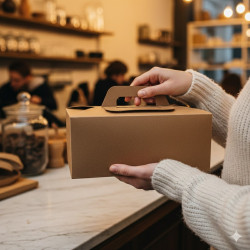 Grâce à son format pratique (30 x 15 x 12 cm) et à sa finition kraft naturelle, cette boîte lunch s’intègre parfaitement dans les parcours de vente à emporter. Elle facilite la distribution et la mise en avant de vos formules déjeuner, coffrets gourmands et emballages éco-responsables tout en garantissant une prise en main optimale pour vos clients.