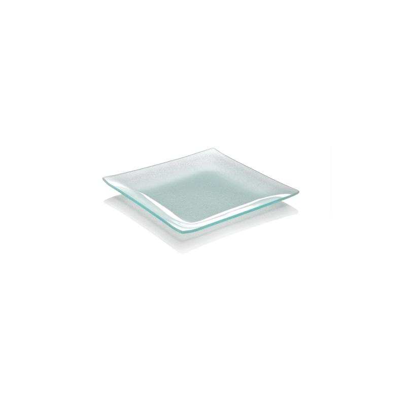 Cette assiette carrée originale aux bords recourbés offre une multitude de possibilités créatives.