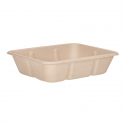 Idéale pour la vente à emporter ou en livraison. Le design épuré de ces boîtes compostables complètera la présentation de vos plats. Les formes arrondies accentuent la matière naturelle: la pâte de cellulose non blanchie obtenue à partir de la canne à sucre.