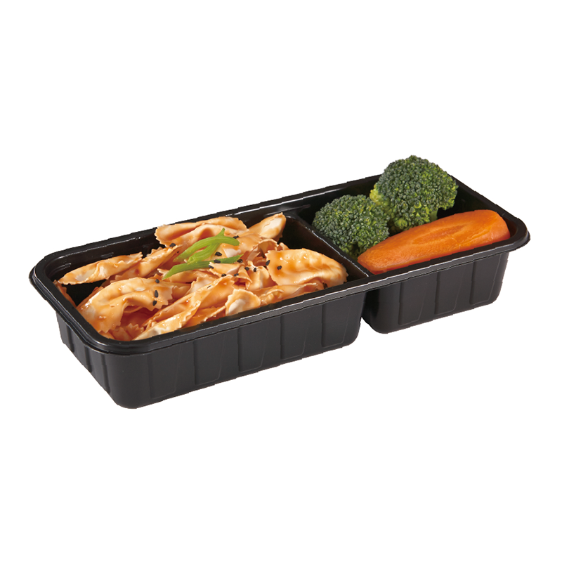 Cette barquette alimentaire dispose de 2 compartiments pour vos plats cuisinés.