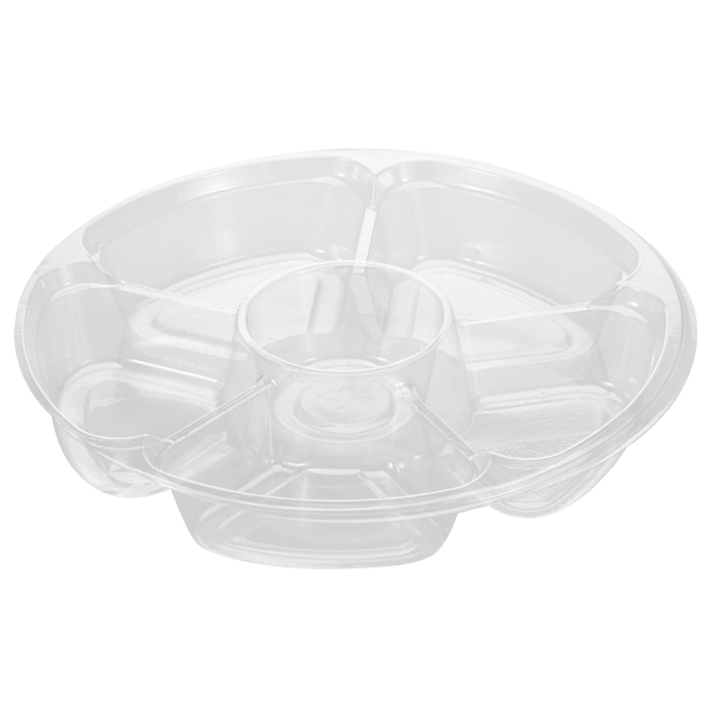 Insert rond 6 compartiments en plastique transparent, parfait pour les plateaux repas à emporter. Un emballage alimentaire professionnel, pratique et élégant pour la vente à emporter.