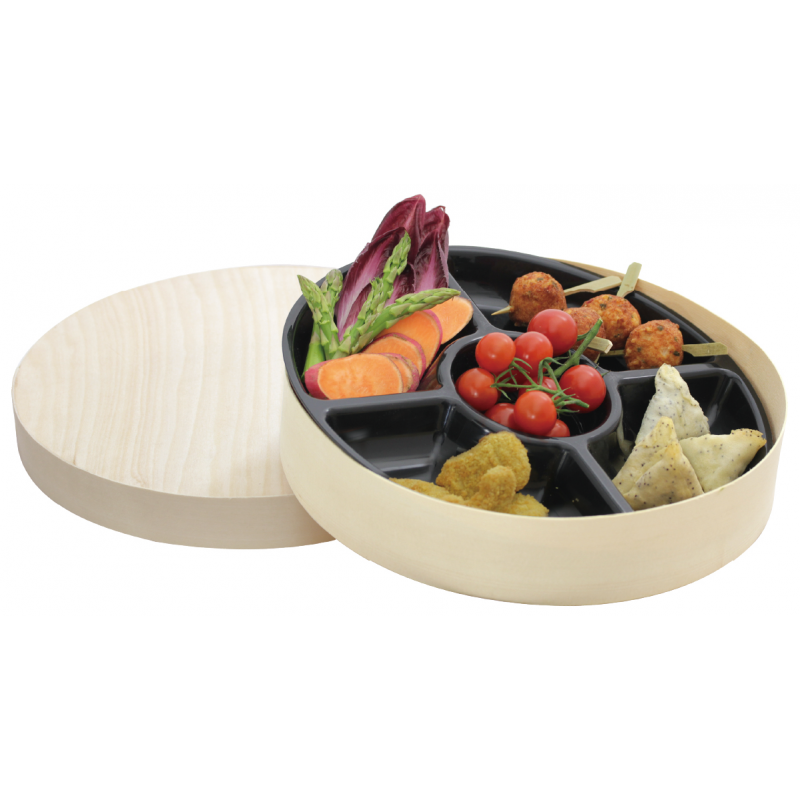 Doté d’un insert à 6 compartiments, ce plateau facilite la disposition harmonieuse de vos produits et préserve les saveurs de chaque préparation. Fabriqué en bois naturel durable, il assure une grande robustesse tout en affirmant un engagement écoresponsable.