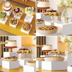 Utilisé en buffet, vitrine ou table de réception, le support cube acrylique blanc permet :