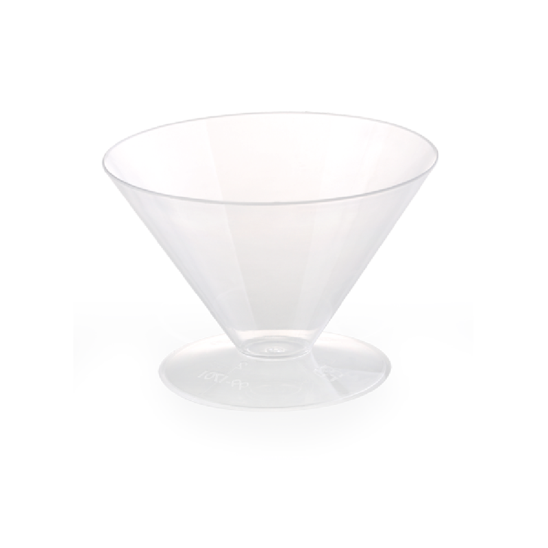 Coupe à dessert en plastique sur jambe courte. Sa petite capacité est idéale pour présenter vos créations