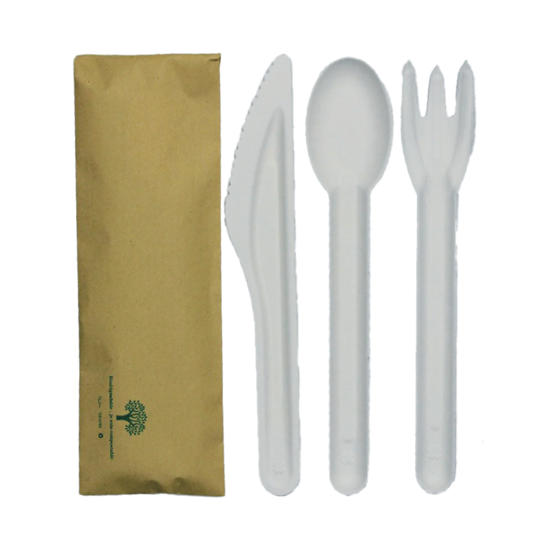 Fourchette +couteau + cuillère + serviette + pochette papier Kraft