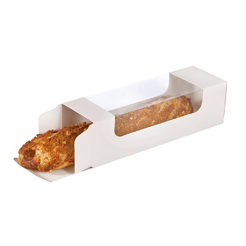La boîte éclair en carton blanc avec fenêtre est conçue pour présenter et transporter vos éclairs de manière élégante et pratique. La fenêtre transparente permet une vue parfaite du contenu, idéale pour mettre en valeur vos créations pâtissières.