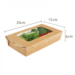 La barquette en kraft avec fenêtre est une option parfaite pour sublimer vos délicieuses salades et autres plats. Grâce à sa fenêtre transparente, vos clients peuvent apprécier visuellement le contenu avec enthousiasme, apportant ainsi une touche d'attrait supplémentaire à vos produits.
