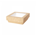 Le saladier carré en carton kraft avec couvercle fenêtre est une solution écologique et pratique, idéale pour présenter et transporter diverses préparations culinaires grâce à ses trois tailles disponibles :