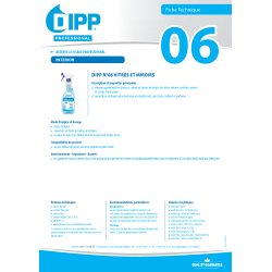 Prêt à l'emploi. Pour nettoyer les fenêtres, les vitres, miroirs et écrans. Élimine les graisses, saletés et traces de doigts. Odeur : citron. pH 7.5.