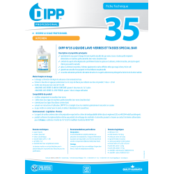 Liquide lave-verre et tasses. Élimine toutes les graisses et salissures, ainsi que les tâches difficiles. Garantit une vaisselle d'une propreté et d'une brillance exceptionnelle. pH 13.9