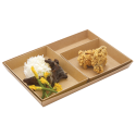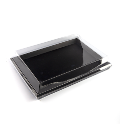 Ce plateau repas marie la simplicité du carton à une esthétique raffinée, accentuée par un couvercle plastique transparent. La transparence offre une vue séduisante sur les mets, ajoutant une dimension visuelle à chaque repas.