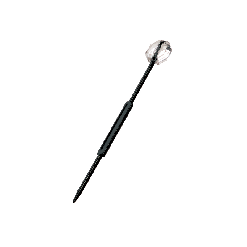 Élégant et sophistiqué, ce pic en plastique noir est orné d'un polyèdre transparent. D'une longueur de 9 cm, il est parfait pour des présentations culinaires raffinées.