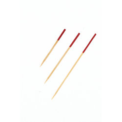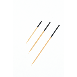 Ces pics en bois avec embout fin, disponibles en rouge ou noir, sont parfaits pour des présentations culinaires élégantes.