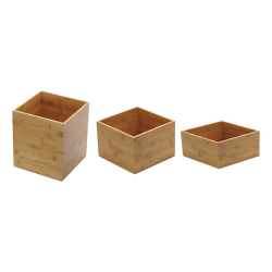 Besoin d'un peu ou beaucoup de hauteur en plus ? Le jeu de 3 réhausses en bambou est là pour pallier ce besoin !  Vous pouvez les utiliser individuellement ou les superposer pour avoir encore plus d'hauteur !