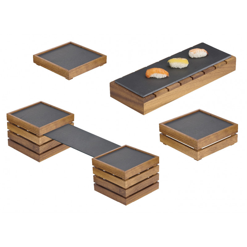 Les réhausses en bois empilables sont la solution idéale pour mettre en valeur vos plats lors de buffets, cocktails et réceptions. Grâce à leur design sobre et élégant, elles apportent du relief et une présentation unique à vos préparations.