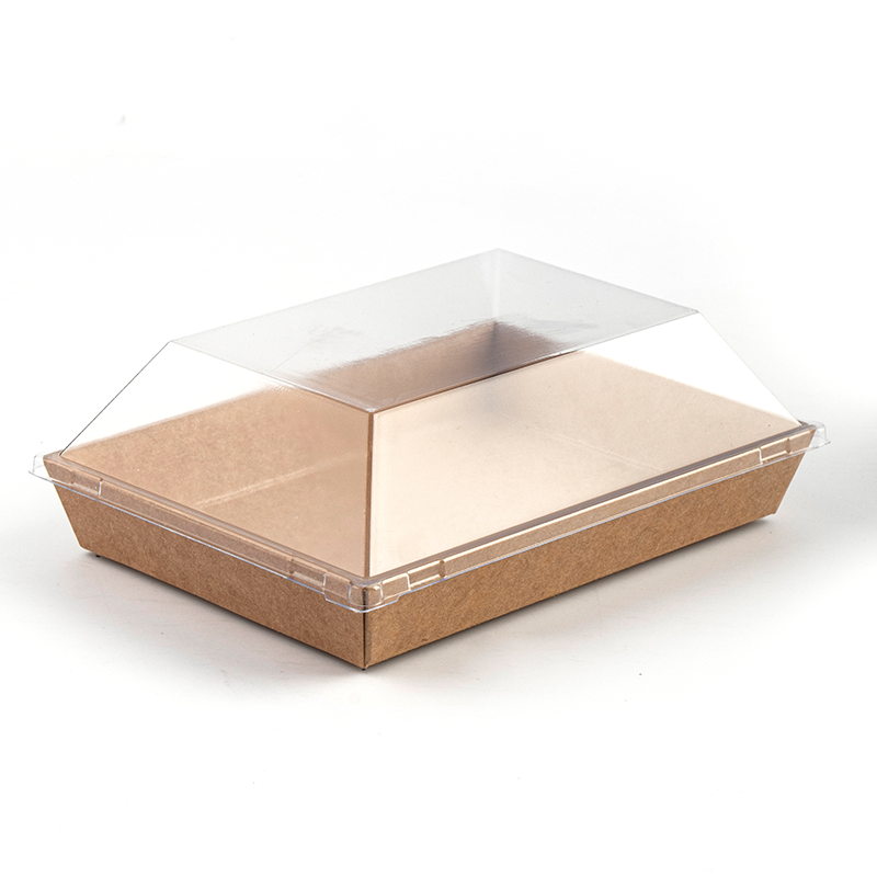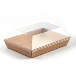 Notre barquette en carton épais avec couvercle existe également en kraft pour donner une dimension plus champêtre à vos prestations.